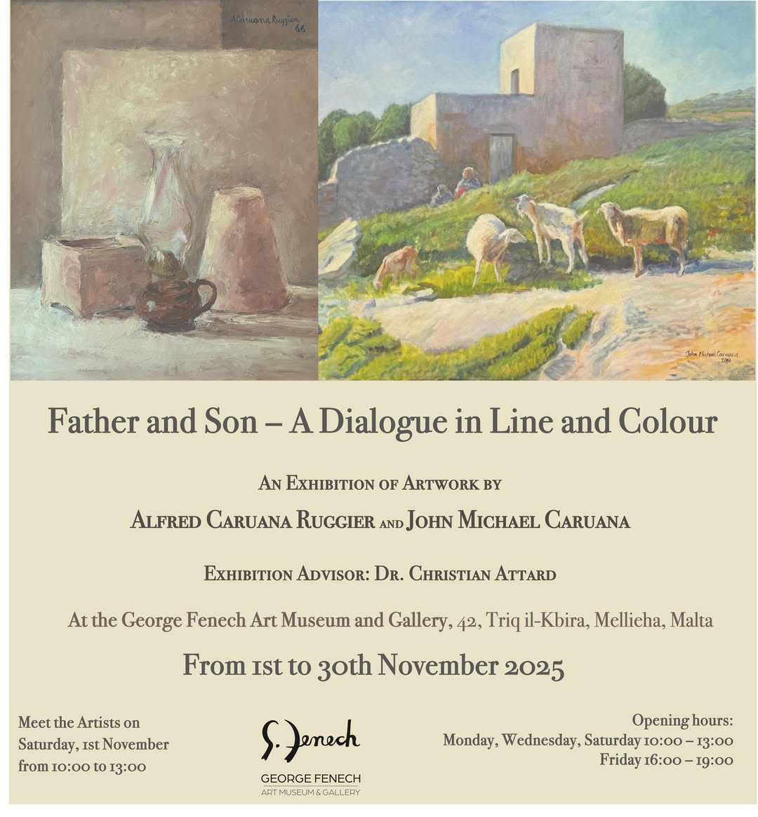 An exhibition of artwork by Alfred Caruana Ruggier and his son, John Michael Caruana will be on display at the gallery during the month of November. A “meet the artists” session will take place at the premises on the fist of November between 10.00 and 13.00.